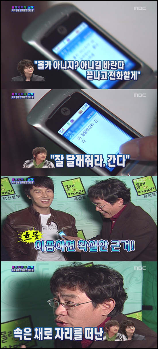 人氣組合神話的李玟雨和申彗星變成了隱藏攝像機犧牲羊的那天是最終回的放送,在放送中把神話的金烔完和文智愛主播公開交往作為前提,播出了金烔完向文智愛主播求婚,但是遭到拒絕的內容。李玟雨和申彗星在前半部分中並沒有覺得不合情理,被騙了。到了後半部分,漸漸開始懷疑是不是“隱藏攝像機”。但是沒有找到證據,以不太輕鬆的心情起身離開,他們給金烔完留下了“希望不是隱藏攝像機”這樣意味深長的短信。這時,李玟雨和申彗星的電話號碼在放送畫面中給出了特寫鏡頭。在這天最終回的“隱藏攝像機”播出以後,製作組在與Newsen的通話中表示“是剪輯過程中被遺漏的失誤,意識到這點的製作組會在之後的重播中消除電話號碼”。並且,製作組道歉說“這不是製作組的本意,是失誤,向需要更換電話號碼的神話成員們道歉”,傳達了歉意的心情。現在該節目的留言板因為指責製作組的失誤的線民們的訪問,呈現出連接不良的情況。
